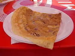 - à base de farine de pois chiche ou de lentille : le dosa en Inde ;