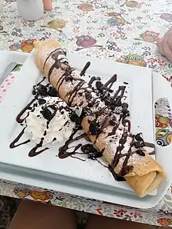 Une crêpe dentelle est une crêpe bretonne très fine, roulée sur elle-même et croustillante.