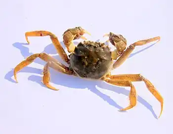 Eriocheir sinensis, connu aussi sous les noms de crabe chinois et crabe poilu de Shanghai, est une espèce de crabes fouisseurs de la famille des Varunidae. Il creuse des galeries dans les berges limoneuses, aboutissant à une « chambre »[1].