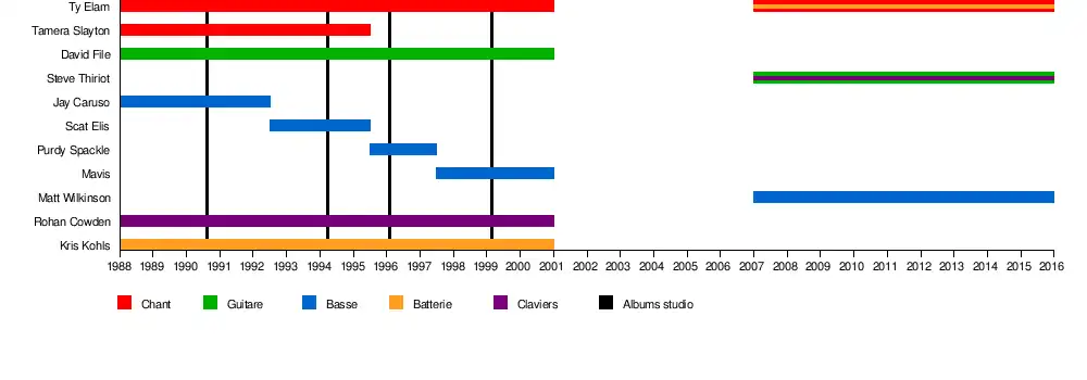 - Ty Elam - chant, batterie (1988-2000, depuis 2006)