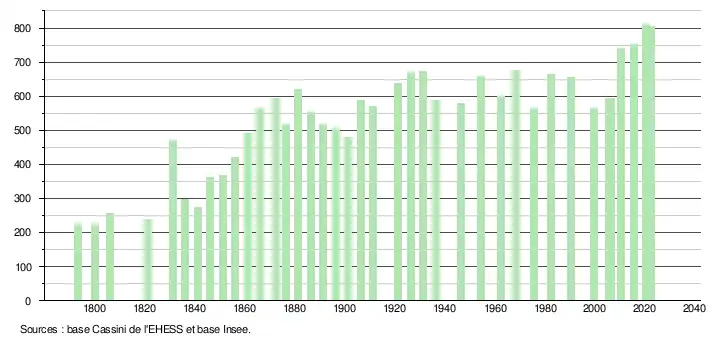 - ↑ Population municipale de référence en vigueur au 1er janvier 2025, millésimée 2022, définie dans les limites territoriales en vigueur au 1er janvier 2024, date de référence statistique : 1er janvier 2022.