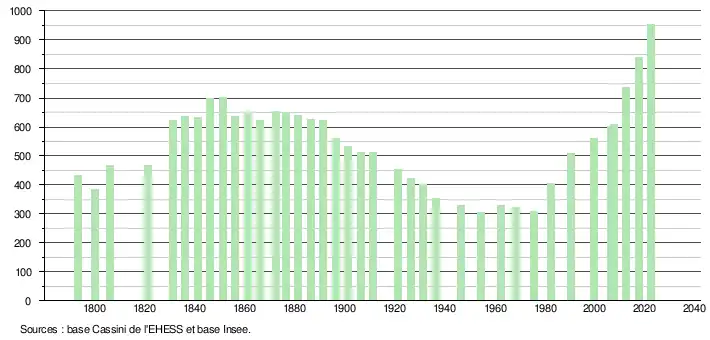 - ↑ Fiches Insee - Populations de référence de la commune pour les années 2006, 2007, 2008, 2009, 2010, 2011, 2012, 2013, 2014, 2015, 2016, 2017, 2018, 2019, 2020, 2021 et 2022.
