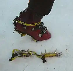 - ↑ Sylvain Jouty et Hubert Odier, Dictionnaire de la montagne, Omnibus, 2009 (ISBN 978-2-258-07980-9), article « Crampons »