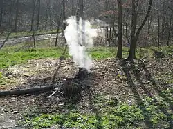 Les gisements de vapeur à la sortie de la montagne qui brûle étaient eux aussi exploités. Une cabane en bois appelée étuve était bâtie à l'émergence des vapeurs. Les curistes s'y asseyaient au-dessus, nus, durant une vingtaine de minutes. À la sortie, un personnel soignant les attendait et les couvrait de vêtements chauds afin de leur éviter un choc thermique.