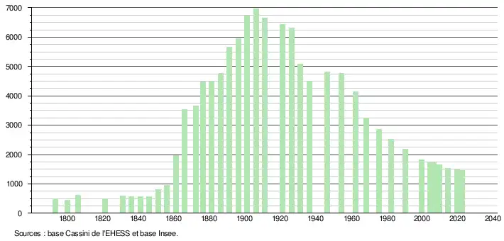 - ↑ Population municipale de référence en vigueur au 1er janvier 2025, millésimée 2022, définie dans les limites territoriales en vigueur au 1er janvier 2024, date de référence statistique : 1er janvier 2022.