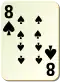 - les 8 autres cartes extérieures du tableau servent à construire des séries décroissantes, en alternant les couleurs : rouge (cœur ou carreau) et noir (pique ou trèfle). Quand une série est constituée sur une des cartes extérieures du tableau, seule la carte la plus basse peut être jouée.