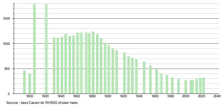 - ↑ Fiches Insee - Populations de référence de la commune pour les années 2006, 2007, 2008, 2009, 2010, 2011, 2012, 2013, 2014, 2015, 2016, 2017, 2018, 2019, 2020, 2021 et 2022.