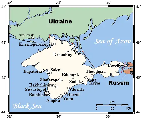 - ↑ Mathilde Gérard, « La Crimée a toujours eu un statut à part en Ukraine », sur Le Monde, (consulté le ).