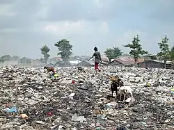 De façon similaire se pose le problème croissant de la gestion des déchets, en particulier dans les pays industriels. Les dernières décennies du XXe siècle ont vu l'augmentation du nombre de déchets, dont en particulier les déchets toxiques (tel que la dioxine), les déchets ultimes de l'industrie nucléaire ou plus simplement de grandes quantités de déchets non-biodégradables. Ces déchets peuvent être à l'origine de cancers dans les populations. Dans certains pays, des décharges publiques gigantesques se sont développées.