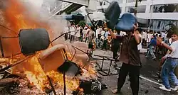 En Indonésie, les émeutes amenèrent les proches de Soeharto à démissionner le 21 mai 1998.