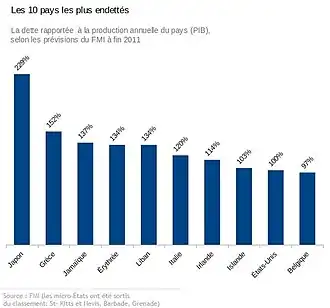 La crise économique mondiale de 2008 trouve la Grèce handicapée par un fort endettement[3] (environ 177 % du PIB fin 2014) et un fort déficit budgétaire (plus de 13 % du PIB)[4]. Cette situation n'entre pas dans les critères de convergence pour entrer dans la zone euro et le gouvernement grec l'a occultée lors de la présentation de sa dette publique, notamment par la collecte de fonds hors bilan et par le biais d'instruments financiers mis au point par la banque d'investissement Goldman Sachs[5], ce qui a participé à l'aggravation de la crise. L'ampleur des problèmes structurels du pays, sa difficulté à prélever l'impôt, son budget militaire surdimensionné et sa dépendance aux fonds structurels européens sont des composantes fortes de la crise grecque dans la zone euro.