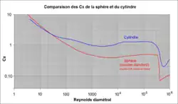 - ↑ Il n'y a guère que les corps non profilés (comme le disque, la palette infinie présentés frontalement à l'écoulement, etc.) qui ne développent pas de crise de traînée (en conséquence leur est le même à tous les Reynolds).