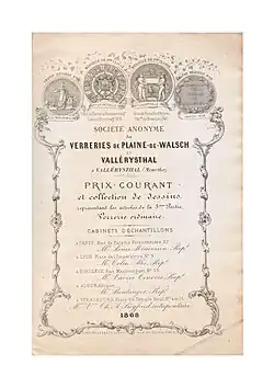 L'annexion d'une partie de la Meurthe en 1871 force le conseil d'administration, présidé par Georges Chevandier de Valdrome jusqu'en 1887 à chercher un moyen de conserver sa clientèle française. La SA rachète donc la cristallerie de Portieux. À partir de 1874, ces verreries réunies commenceront à produire des verres décorés à l'acide. La manufacture s'attacha les talents de différents peintres comme Charles Spindler pour perfectionner ses décors et à partir de 1897 imita les créations Art nouveau d’Émile Gallé[16].