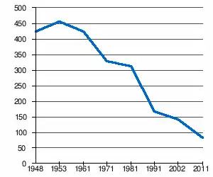 - 1 2 (sr + en) « Livre 20 : Vue d'ensemble comparative de la population en 1948, 1953, 1961, 1971, 1981, 1991, 2002 et 2011, données par localités) » [PDF], pages du recensement de 2011 en Serbie - Institut de statistique de la république de Serbie, (consulté le )