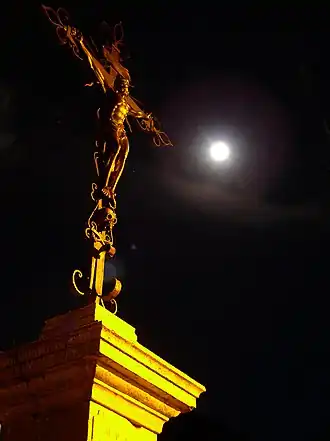 La croix porte l'inscription « en 1590 par les nobles aïeux de Jes Lt Fc Bn de ce lieu et réédifiée par lui le 29 juin 1837 »[2]. « Jes Lt Fc Bn » signifie Jules Laurent Féréric Baron[2].