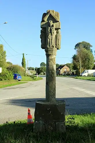 La croix de Landoma, près du lieu-dit « La fourchette », au croisement de la route Départementale 764 et de la rue du stade, sur la commune de Pleugriffet dans le Morbihan[1].