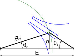 soit α = π/4 = 45° pour quatre rainures, et α = π/6 = 30° pour six rainures. On a alors les relations suivantes entre l'entraxe E, le rayon de la roue menante R1 et le rayon de la roue menée R2 :