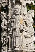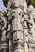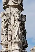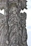 Le fût est divisé en quatre étages horizontaux séparés verticalement par quatre pilastres à clochetons montant jusqu'à la hauteur du quatrième étage, séparé des autres par une moulure saillante. Entre ces pilastres s'élèvent, dans l'étage inférieur, quatre colonnes dont les chapiteaux servent de consoles à quatre statuettes qui forment le second étage ; elles sont surmontées de dais, sur lesquels se dressent encore, dans le troisième étage, quatre autres statuettes. Celles-là représentent :