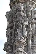 - Un fût rond sur lequel s'adossent des statuettes debout et des ornements ;