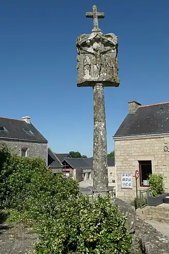 Le fût s'élève en une seule colonne. La bannière est sculptée sur quatre faces. Elle est surmontée d'une petite croix.