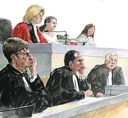 - ↑ Le second procès Dreyfus à Rennes en 1899 est suivi, en particulier, par le journaliste et dessinateur de croquis d'audience Maurice Feuillet. Ses croquis sont réalisés pour le magazine illustré britannique Black and White (en).