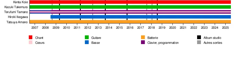 Le groupe est constitué du chanteur Kenta Koie, du guitariste Kazuki Takemura, du bassiste Hiroki Ikegawa, du batteur Tatsuya Amano et de Terufumi Tamano au clavier.