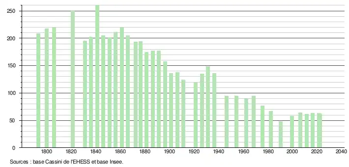 - ↑ Population municipale de référence en vigueur au 1er janvier 2025, millésimée 2022, définie dans les limites territoriales en vigueur au 1er janvier 2024, date de référence statistique : 1er janvier 2022.