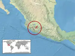 Cette espèce est endémique du Mexique. Elle se rencontre dans le nord-est de l'État de Michoacán et dans le sud de l'État de Jalisco[1].