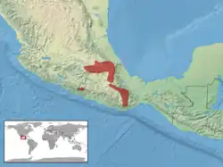 Cette espèce est endémique du Mexique. Elle se rencontre dans les États de Veracruz, de Morelos, de Tlaxcala, dans le centre-ouest du Puebla, dans le centre du Guerrero, dans le centre de l'État d'Oaxaca et dans le sud de l'État d'Hidalgo[1].