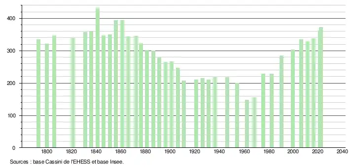 - ↑ Fiches Insee - Populations de référence de la commune pour les années 2006, 2007, 2008, 2009, 2010, 2011, 2012, 2013, 2014, 2015, 2016, 2017, 2018, 2019, 2020, 2021 et 2022.