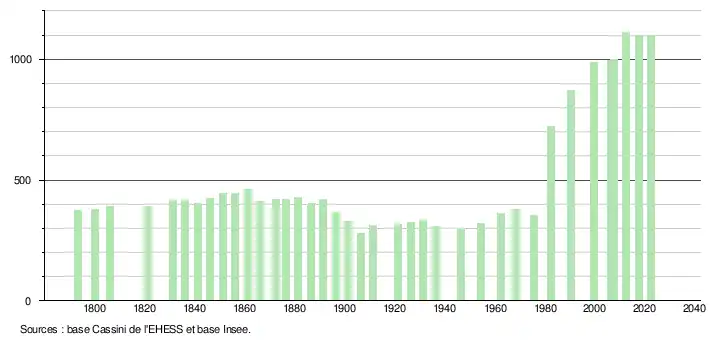 - ↑ Fiches Insee - Populations de référence de la commune pour les années 2006, 2007, 2008, 2009, 2010, 2011, 2012, 2013, 2014, 2015, 2016, 2017, 2018, 2019, 2020, 2021 et 2022.