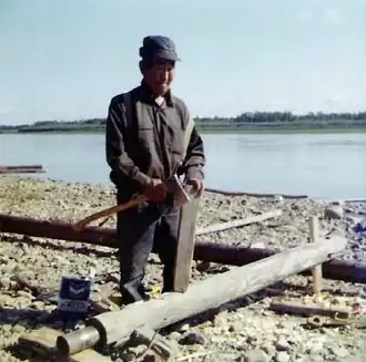 En 1910 le village s'était déplacé d'environ 0,5 milles (1 km) en aval, à cause des mouvements des alluvions de la rivière.