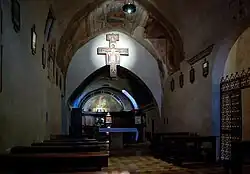 Selon Thomas de Celano (Vita Prima), c'est ce crucifix qui aurait parlé à François d'Assise (2 C 10) et qui lui aurait dit : « Va et répare ma maison qui, tu le vois, tombe en ruine! »