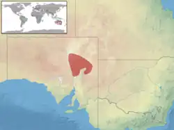 Cette espèce est endémique d'Australie-Méridionale[1]. Elle se rencontre dans les environs du Lac Eyre.