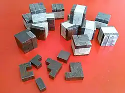 Le cube diabolique est un puzzle en trois dimensions composé de six polycubes (formes formées par le collage de cubes, ensemble, face à face) qui peuvent être assemblés pour former un seul cube de 3 × 3 × 3[1],[2]. Les six pièces sont un dicube, un tricube, un tetracube, un pentacube, un hexacube et un heptacube, c'est-à-dire des polycubes de 2, 3, 4, 5, 6 et 7 cubes.