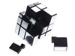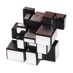 Les blocs de miroir, également connus sous le nom de cube miroir et cube de bosse, sont un type de puzzle combiné et de modification de forme du cube de Rubik standard 3×3×3 et ont été inventés en 2006. Le mécanisme interne du puzzle est presque identique à celui du Rubik's Cube, bien qu'il diffère des cubes 3×3 normaux en ce que toutes les pièces sont de la même couleur (généralement des autocollants réfléchissants en or ou en argent) et sont identifiées par la forme puisque chacune est également un prisme rectangulaire distinct.Comme le Ghost Cube et le Mastermorphix, les Mirror Blocks ont une forme 3×3×3, ce qui signifie qu'il peut être résolu de la même manière que le Rubik's Cube 3×3×3. La solution simple la plus rapide pour Mirror Blocks dans une compétition est de 10,07 secondes et a été réalisée par Braden Richards à Huntington, en Virginie-Occidentale, le 17 mai 2024[1],[2].