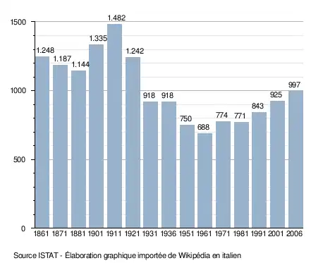 - ↑ (it) Popolazione residente e bilancio demografico sur le site de l'ISTAT.