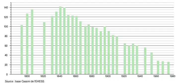 Jusqu'en 1976, la démographie de Cugny-lès-Crouttes était :
