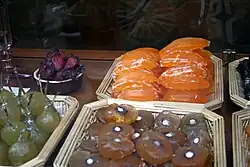 La pâte de fruits est une confiserie obtenue à partir de fruits cuits avec du sucre. Il s'agissait à l'origine d'une méthode de conservation des fruits. L'invention des pâtes de fruits remonterait au Xe siècle[43]. La région Auvergne a été l'une des principales régions productrices de pâtes de fruits en France. Elle est aujourd'hui supplantée par le Vaucluse qui en est devenu le premier producteur[44]. Il existe de nombreux types de pâtes de fruits, les plus courantes étant la pâte de coing, d'abricot, d'agrumes, etc.