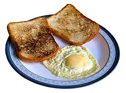 - Œufs Bénédicte (eggs Benedict) : souvent consommé au petit déjeuner ou au brunch, ce mets se compose de deux muffins anglais grillés surmontés d'une tranche de lard et de deux œufs pochés, servis avec une sauce hollandaise.