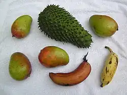 Les fruits (noix de coco, ananas, mangues, papayes, oranges, mais aussi jamalacs, corossols ou cœurs de bœuf) sont souvent transformés en jus, en sorbets ou en marmelades[1],[2]. De plus, les mangues, papayes, noix de coco et bananes sont autant de fruits qui entrent dans les desserts[3]. Ceux-ci sont souvent garnis de fleurs fraîches[4].