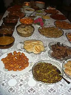 Le pulao gourmet est servi lors des fêtes. Differents types de biryani et pulao sont : Kachi (moutton), Tehari (bœuf), Ilish et Murg (poulet). Differents types de kebabs sont : shikh, reshmi, shashlik, tikka et shami. La cuisine est riche en desserts et confiseries, galettes de riz à la poêle ou à la vapeur (pitha) au halwa et bonbons faits de fruits et au fromage sucré. Le thé noir en tant que boisson nationale est très répandu et offert aux invités en gage de bienvenue. Des hors-d'œuvre populaires sont : samosas, pakoras et petits pains. Le phuchka est une cuisine de rue. Les Chittagong Hill Tracts du sud-est du Bangladesh affichent une cuisine de bambou. Le Bangladesh est aussi le cinquième producteur au monde de fruits tropicaux.