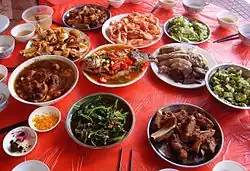 La cuisine hainanaise (海南菜, ) est connue pour sa fraîcheur et sa richesse. Du fait de leur grande disponibilité, les fruits de mer y dominent, mais le « lait de coco, façon Qiongzhou », le « poulet hainanais au lait de coco » et le mouton de Dongshan, nourri aux feuilles de thé, sont aussi très prisés.
