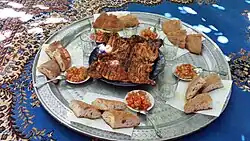 Un autre met typique du Maroc est réalisé avec la tête de mouton, qui est rôtie et nettoyée avant d'être cuisinée en mijoté. Le résultat est une viande extrêmement tendre et fondante, particulièrement parfumée avec un subtil arrière goût de fumée[3].