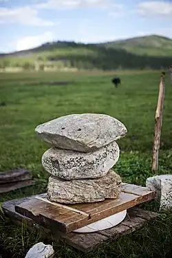 - Le boodog (боодог), la cavité abdominale d'une chèvre ou d'une marmotte préalablement désossé est utilisée pour la cuisson de la viande. C'est un plat de fête consommé principalement pendant l'été[4].