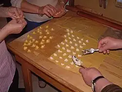 Les cappelletti sont des carrés de pâte farcie, pliés en deux en triangle et reliés aux extrémités par un geste rapide et expert autour d’un doigt de la main.