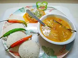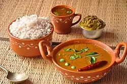 Pour un repas non végétarien, on inclura les currys et les plats préparés avec du mouton, du poulet ou du poisson.
