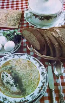 Les viandes les plus populaires sont le bœuf et le mouton. La viande de cheval est consommée bouillie et conservée dans le sel. La volaille (poulets, oies) est très répandue dans les fermes et les œufs sont un aliment populaire.