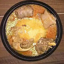 Egoussi déssi - Gbôh-lan déssi: gbôh-lan = viande (lan) de chèvre (gbôh/ égbôh), déssi = sauce (ici à base de purée de tomate et autres épices et assaisonnements.