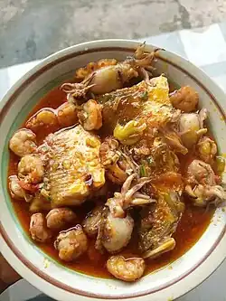 - Déssi hé: sauce (= déssi) blanche (= hé), donc sans tomates, faite de légumes et poissons.